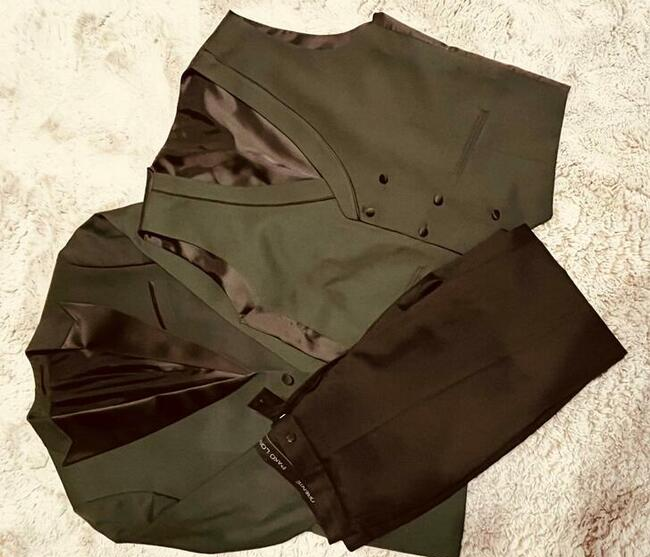 Sprzedam zielony smoking PAKO LORENTE składający się z marynarki, spodni oraz kamizelki.