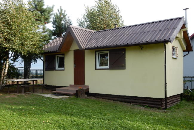 Domek znajduje się na ogrodzonej posesji. Składa się on z pokoju z aneksem kuchennym i łazienki.