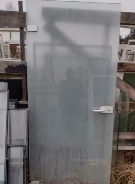 mam do zaoferowania używane drzwi szklane z zawiasami które montuję się bezpośrednio do ściany w dobrym stanie, szyba hartowana