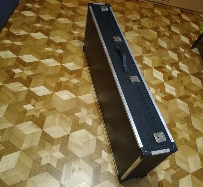 Skrzynia transportowa, futerał jest uniwersalnym kufrem przeznaczonym na instrumenty klawiszowe na keyboardy. Skrzynia idealnie ochroni sprzęt przed zarysowaniami, kurzem, brudem itd.. Skrzynia jest wykonana z wytrzymałej 12 mm sklejki i wyposażona w uchwyt do noszenia, cztery zamki zamykane na kluczyk oraz wewnątrz wypełniona pianką ochronną. Bardzo solidne wykonanie na zamówienie.