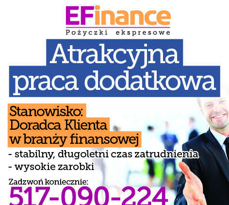 Instytucja finansowa Eden Finance sp. z o.o. zajmuje się udzielaniem pożyczek poza bankowych z obsługą w domu Klienta. Jesteśmy stabilnym pracodawcą gotowym zagwarantować Ci atrakcyjne warunki współpracy. Jeżeli poszukujesz pracy dodatkowej, a także interesuje Cię rozwój w obszarze finansów i obsługi Klienta to znaczy, że szukamy właśnie Ciebie!