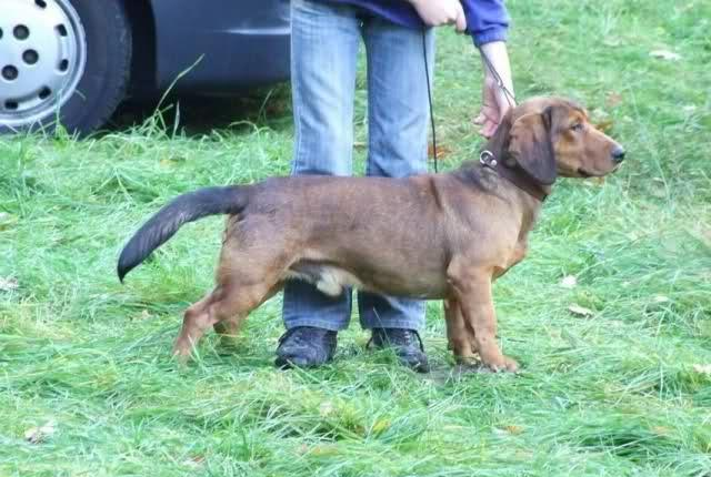 Bardzo ładny pysk, podobny do jamnika, ciało znacznie bardziej muskularne.Krótka sierść.