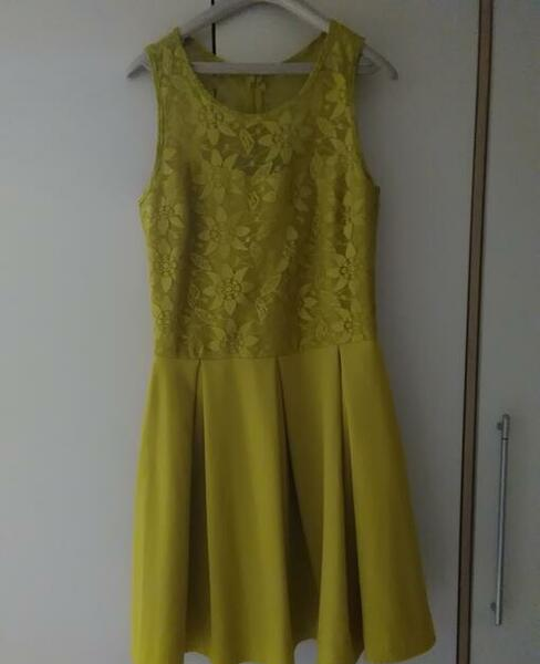 Sprzedam Żółtą Sukienkię Koronkową Z Kokardą Okazja Polecam