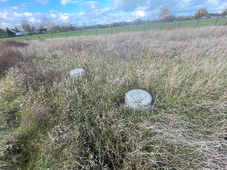Działka po mulczowaniu, bokami ogrodzona ogrodzeniem Panelowym 3D, na froncie działki przygotowane punktowe fundamenty pod ogrodzenie frontowe, przygotowana pod budowę.