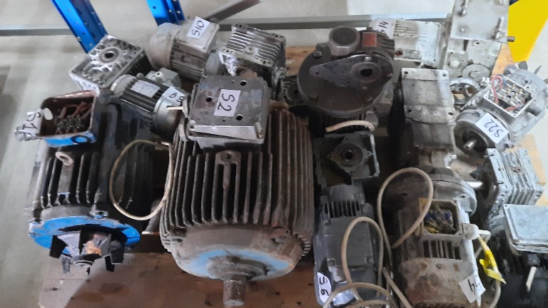 S1-7,5kW (wymiary50x27x30); S2-Elektrim Silnik-Motor Typ SP 160M-4;22.5kg;1460obrotów;86r.; S4-silnik z przekładnią typ A202/UH30; S5-silnik z przekładnią BUSCK typ MS71A-4, 5kg; S6-silnik z przekładnią bez tabliczki; S8-BONFIGLIOLI RIDUTTORI O,55kW; S9-0,55kW, VEMFTT- Italy; S10-0,37kWpolska technika napędowa; S14-bez tabliczki; S17-BUSCK; S22-bez tabliczki
