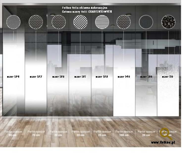 Folia dekoracyjna gradientowa wzór 142 - folia gradientowa jednokierunkowa -mrożony pas szerokości 100cm ze stopniowo zanikającym ku górze wzorze -poprzez mrożone kropki ( NEW) -szerokość rolki 152cm = wysokosc wzoru