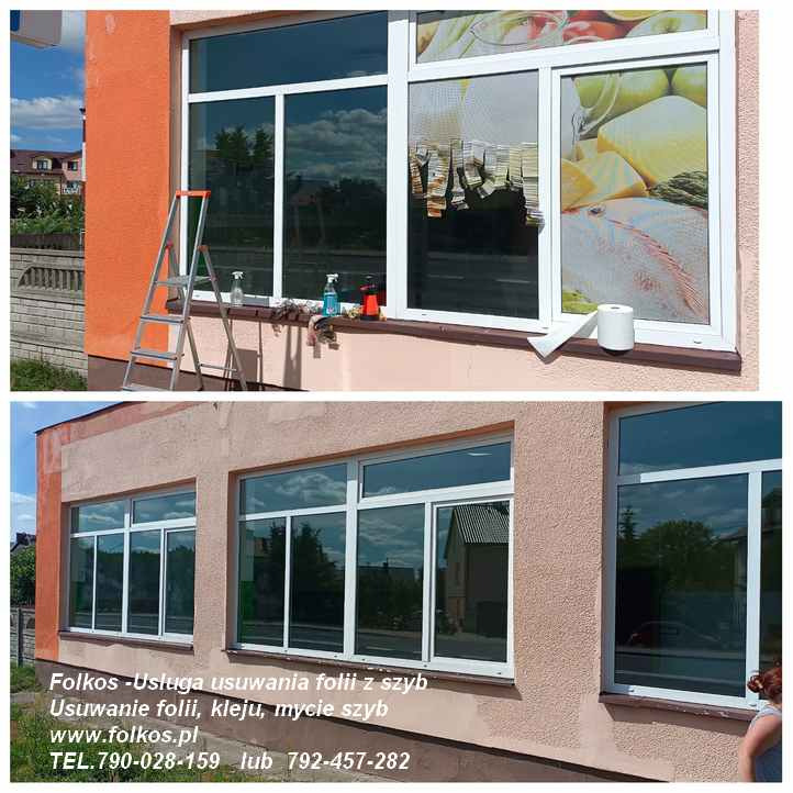 Usługa zrywania folii- demontaż starych reklam - starej folii z szyb ,usuwanie folii z witryn sklepowych - mycie szyb, usuwanie kleju, naklejek.
