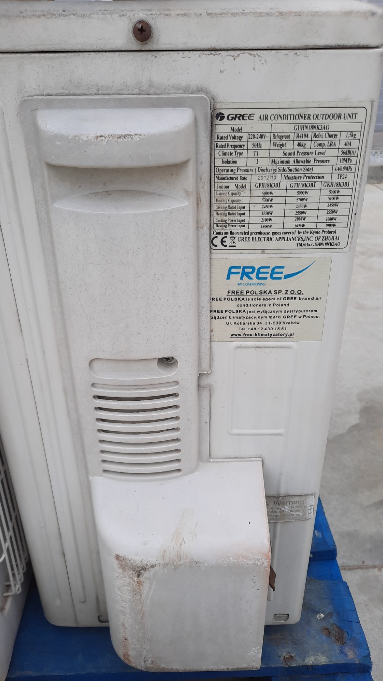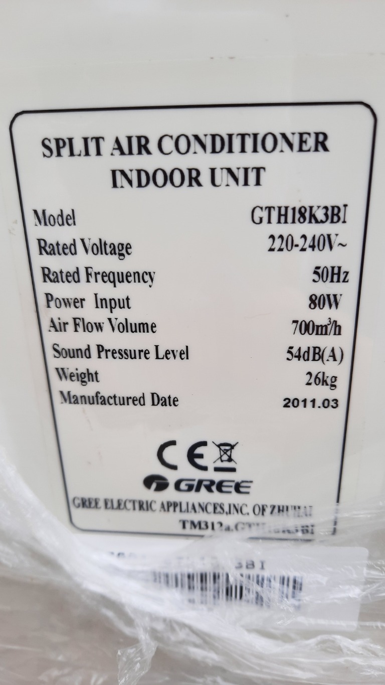 Gree Air Conditioner Outdoor Unit model GUHN18NK3AO, Spliot Air Conditioner Indor Unit Model GTH 18K3B rok 2011