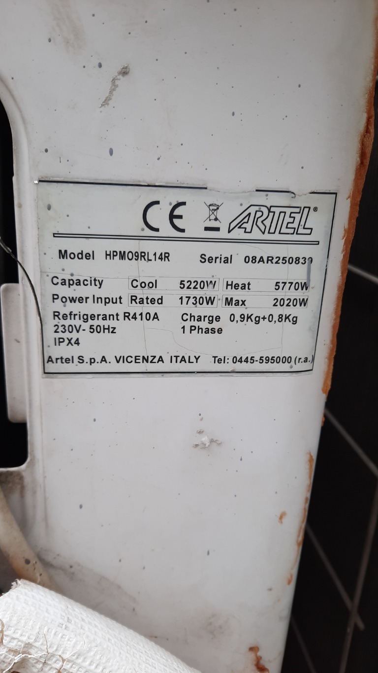Serial: 08AR250839; Capacity Cool 522W Heat 5770W; Refrigerant R410A