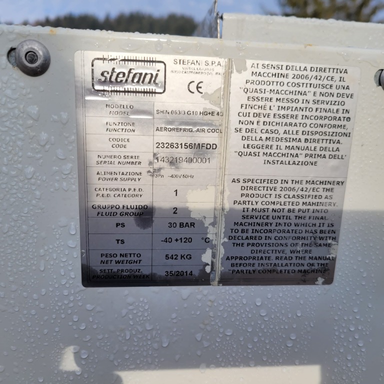 Chłodnia freonowa Stefani (4 wiatraki)w Łabowej jest cena netto 9660zł model SHiN 056/4 H10 HG+EL4; Code 23256063MFDS; seria nr 142904500001; 30BAR; Produkcja10/2014