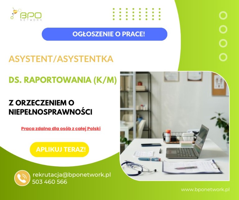 Asystent/Asystentka ds. raportowania (K/M) z orzeczeniem o niepełnosprawności