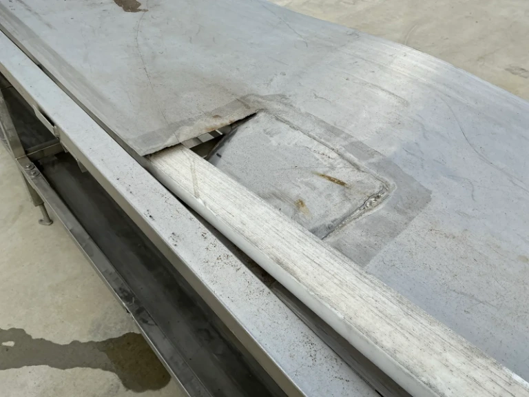 16 (L-8) TRANSPORTER 9,4 M.B. cena netto 9240zł "2010r;Typ PPI Top Conveyor,Marel Salmon A/S;ID132347,Górna taśma szer. 29cm Dolna taśma szer. 56 cm Odległość między taśmą górną a dolną 20 cm ...