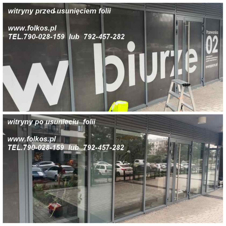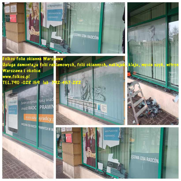 Zrywanie folii , naklejek z witryn Warszawa TEL.790-028-159